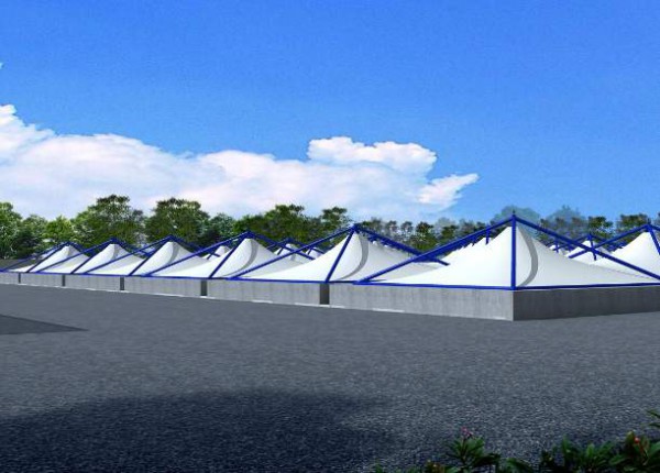 污水池加蓋主要分為固定式和移動式的,固定式主要采用的是鋼支撐反吊膜結(jié)構(gòu),這個結(jié)構(gòu)具有很強(qiáng)的抗腐蝕性,它的材質(zhì)能把廢氣完全罩住。整體的鋼結(jié)構(gòu)在外面將膜體懸掛倒掉,這樣就能夠從根本上解決鋼結(jié)構(gòu)和膜體接觸產(chǎn)生的腐蝕性,整體的防腐級別就能夠得到很好的提升,至少能夠使用50年的壽命。而且膜材的自身重量非常輕,且具有很大的拉強(qiáng)力,能夠從根本上解決傳統(tǒng)建筑中沒辦法在大跨度中使用,特別適合于大面積的污水池。