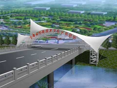 高速公路膜結(jié)構(gòu)是由多種薄膜材料及加強(qiáng)構(gòu)件通過一定方式使其內(nèi)部產(chǎn)生一定的預(yù)張應(yīng)力以形成某種空間形狀,作為覆蓋結(jié)構(gòu),并能承受一定的外荷載作用的一種空間結(jié)構(gòu)形式。